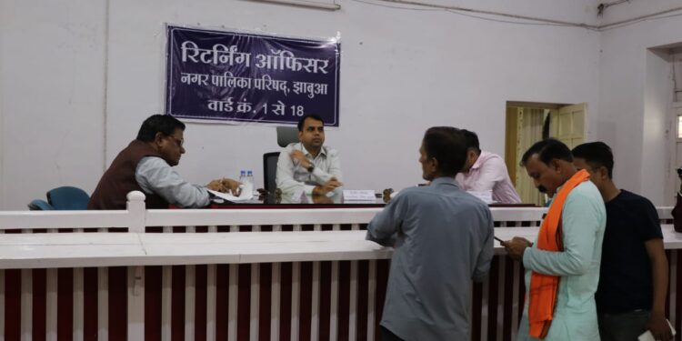 झाबुआ जिले मे नगर पालिका के चुनाव का माहौल गरमाया चुनावी मैदान मे 62 अभ्यार्थी अपनायेंगे अपनी किस्मत देखते हे किसको मिलेगी जीत कि खुशी ओर किसको सामना करना पड़ेगा अपनी हर का। झाबुआ कलेक्टर एवं जिला निर्वाचन अधिकारी सोमेश मिश्रा को आज नगरीय निकाय निर्वाचन 2022 में नगरपालिका झाबुआ में नाम निर्देशन पत्रों की जांच मे आज 15 सितम्बर को अभ्यर्थियों से नाम वापस लेने की अंतिम तारिख को 55 आवेदन वापस लेने हेतु प्राप्त हुए है।