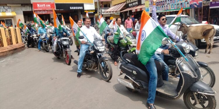 झाबुआ, 08 अगस्त 2022 हर घर तिरंगा कार्यक्रम के तहत आज जिला शिक्षा अधिकारी कार्यालय द्वारा जिला पुस्तकालय जेल चौराहे से बस स्टैण्ड, उत्कृष्ट विद्यालय, राजवाड़ा से होते हुए राजगढ़ चौराहे से जिला शिक्षा अधिकारी कार्यालय तक बाईक रैली निकाली गई। एस डी एम एस एस मुजाल्दा द्वारा झंडा दिखाकर कर रेली को प्रारंभ किया गया। रैली में जिला शिक्षा अधिकारी ओ पी बनड़े और कार्यालय के समस्त कर्मचारी और मॉडल स्कूल के समस्त स्टॉफ भी उपस्थि रहा।