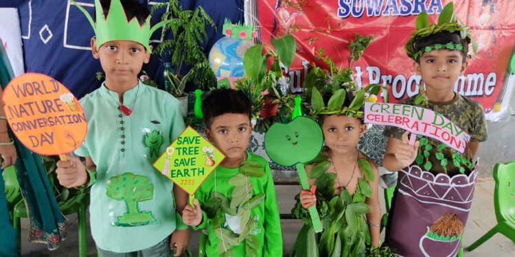 सभी स्टूडेंट्स एवं स्टाफ ने ग्रीन ड्रेस पहनी l बलून काम्पेटीशंन, ड्राइन्ग काम्पेटीशंन का आयोजन किया गया l