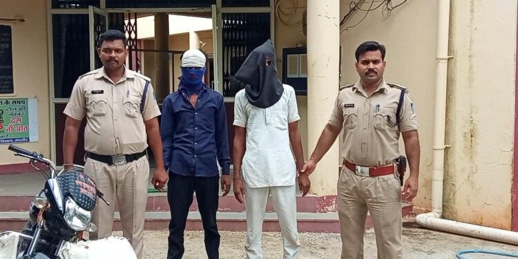 आरोपीगण गोपाल उर्फ रामगोपाल पिता नानुराम मेघवाल उम्र 38 साल निवासी चिकनीया थाना गरोठ हा.मु. फारिया बाबुल्दा थाना भानपुरा व विष्णु पिता हेमराज मेघवाल उम्र 20 साल निवासी नई आबादी फारिया बाबुल्दा थाना भापुरा को गिरफ्तार किया गया है।
