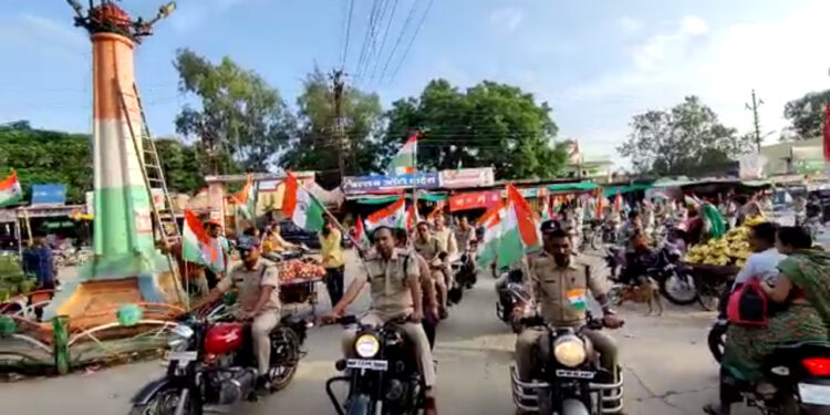 महिदपुर थाना परिसर से तिरंगा वाहन रैली निकाली गई जिसे महिदपुर के प्रमुख मार्ग से होते हुए पुनः महिदपुर थाने पर समापन किया गया रैली का स्वागत नगर के गणमान्य नागरिकों से लेकर महिदपुर की हर जनता ने पुष्प वर्षा कर स्वागत किया क्योंकि माहौल ऐसा था कि आज हर कोई इस तिरंगे के रंग में डूबा हुआ था । डीजे पर देशभक्ति गीत के साथ पुलिस प्रशासन जब निकला तो हर व्यक्ति डीजे की धुन पर थीराक उठा पूरे महिदपुर में भ्रमण करते हुए तिरंगा रैली जब थाना परिसर पहुंची तो अधिकारी से लेकर पुलिस जवान तक के शरीर में जोश और जुनून जाग उठा और उन्होंने खुलकर देशभक्ति गीतों पर डांस कर अपने जोश को बयां किया जानकारी थाना प्रभारी दिनेश भोजक ने दी।