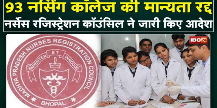 मध्यप्रदेश के 93 नर्सिंग कॉलेजो की मान्यता रदद्। सरकार ने कहा -नर्सिंग सत्र 2021-22 में जिस किसी भी छात्र का एडमिशन सूची में दी गयी कॉलेजो में हो वो अपनी कॉलेज से फीस वापस ले। अब इन कॉलेजो की मान्यता समाप्त कर दी गयी है।