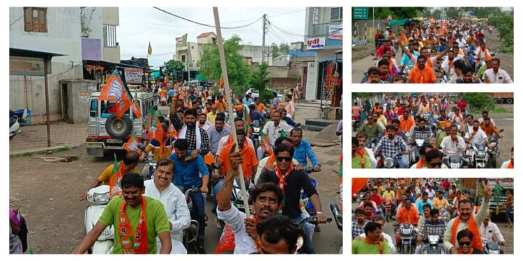 जीतेगी भाजपा का संकल्प लिया गया। बाइक रेली मे भाजपा जिला अध्यक्ष लक्षमण सिह नायक ओर भाजपा युवा मोर्चा जिला अध्यक्ष कुलदीप सिंह चौहान के साथ इस रेली का सुभारम्भ् कर इस रेली को पूर्ण किया जिसमे सभी भाजपा जिला के सदस्य ओर भाजपा युवा मोर्चा के जिलापधादिकरी मौजूद रहे ।