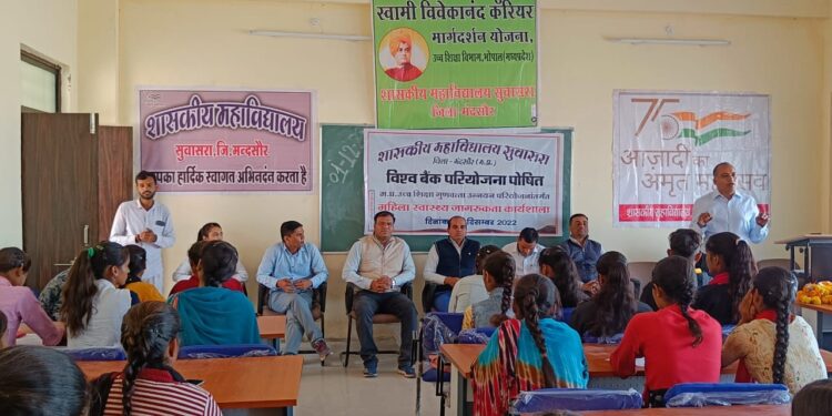 दिनांक 01 दिसंबर 2022 को शासकीय महाविद्यालय सुवासरा में विश्व बैंक परियोजना पोषित मध्य प्रदेश उच्च शिक्षा गुणवत्ता परियोजना अंतर्गत महिला स्वास्थ्य जागरूकता विषय पर कार्यशाला का आयोजन किया गया कार्यशाला के मुख्य अतिथि डॉ. स्नेहिल जैन ब्लॉक मेडिकल ऑफिसर सुवासरा थे जिन्होंने महिला स्वास्थ्य से संबंधित विभिन्न रोग संक्रमण उनके घरेलू एवं प्राथमिक उपचार के संबंध में जानकारी विद्यार्थियों को प्रदान की कार्यक्रम की अध्यक्षता प्राचार्य जगदीश चंद्र बैरागी ने की, कार्यक्रम का संचालन सुभाष चंद्र वर्मा ने किया कार्यक्रम में प्रो. दिनेश कुमार पाटीदार, श्री भूपेंद्र रठा, डॉ भूरसिंह निंगवाल, सुश्री अंजलि व्यास,राजेश कल्याण एवं अरविंद जोशी उपस्थित रहे महाविद्यालय के विद्यार्थियों ने कार्यशाला का लाभ प्राप्त किया। समस्त कार्यक्रम विश्व बैंक प्रभारी सुरेश देवड़ा के निर्देशन में संपन्न हुआ।